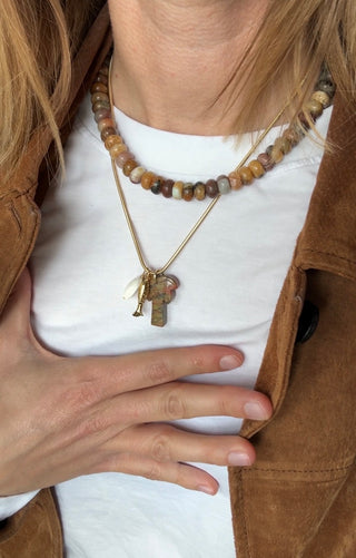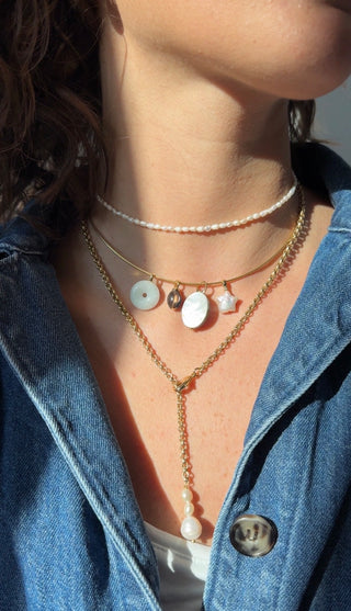 Um die Langlebigkeit deiner Schmuckstücke zu gewährleisten, vermeide den Kontakt mit Wasser, Parfüm und Chemikalien. Bewahre den Schmuck an einem trockenen Ort auf und reinige ihn gelegentlich mit einem weichen Tuch.